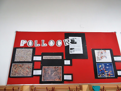 fomos até à sala de entrada na escola observar, ouvir falar e exprimir aquilo que sentíamos ao olhar para as obras de Pollock.