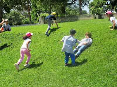 E enquanto esperámos pelo pãozinho que foi para o forno a lenha, brincámos...correndo, saltando rebolando na relva ... divertimo-nos muito.