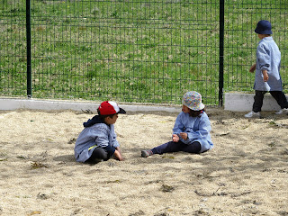 Vimos as flores que crescem no campo ao lado da nossa escola...e brincámos com a areia que é tão bom...