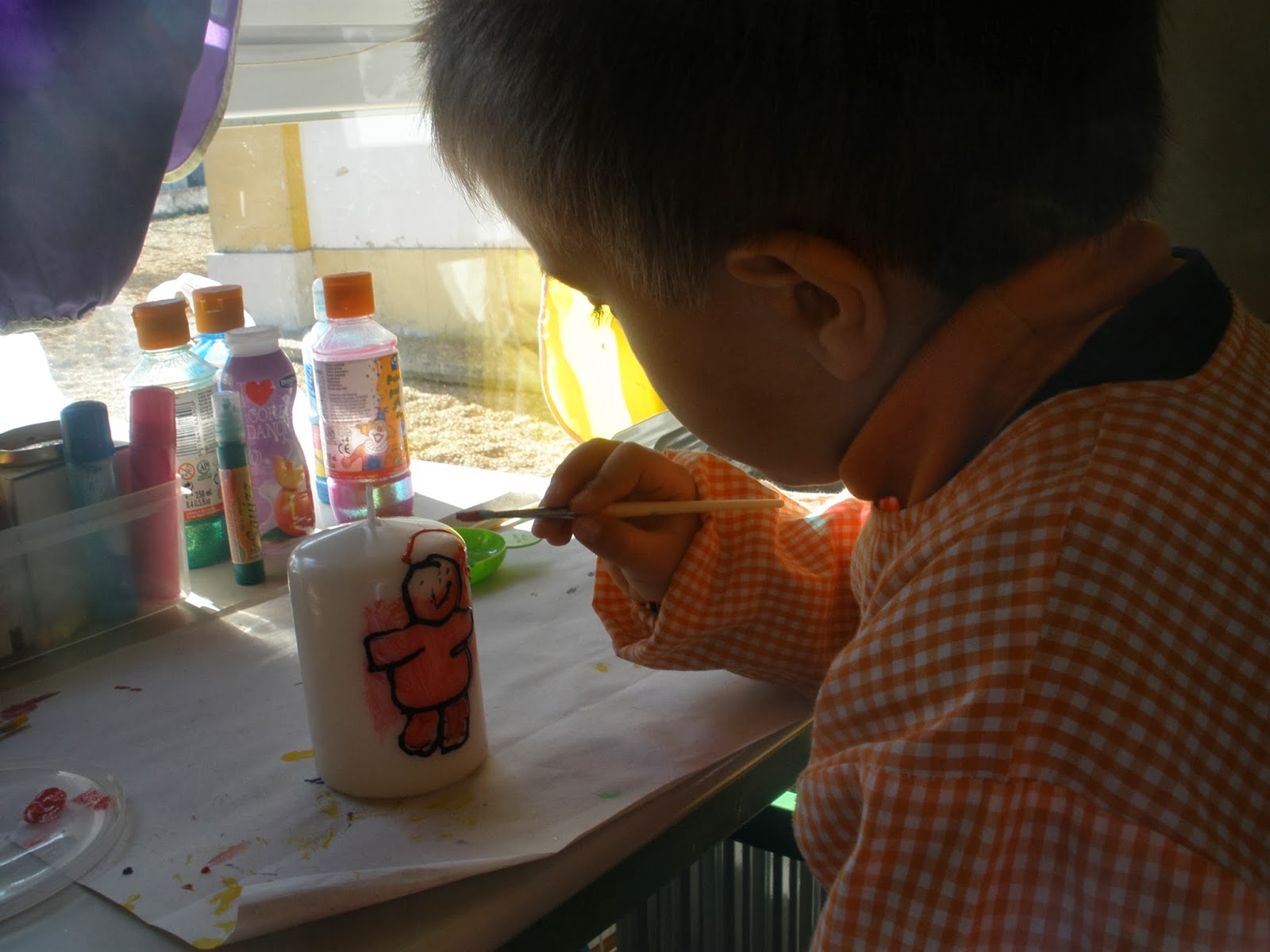 Pintando as velas que cada menino ofereceu à família.