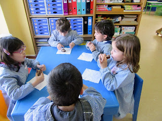 A Susana ofereceu a cada menino um saquinho com bolachinhas, uma delas com a inicial do nome de cada menino, e ofereceu também a cada menino e menina um pregador feito em eva com o nome escrito. Obrigada Susana pela disponibilidade e pelos presentes que nos ofereceu.
