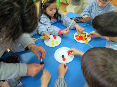 Também fizemos carimbos e desenhámos com cotonetes...