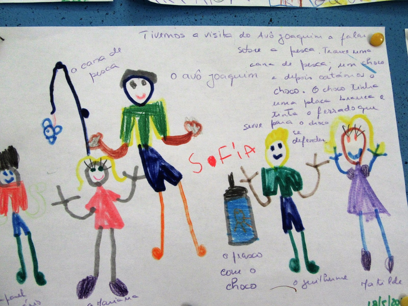 Obrigada ao Avô Joaquim por ter ensinado tanto...Ah, já me esquecia...o avô disse que quando vai à pesca, leva sempre um saco...sabem para quê? Para não deixar o lixo na praia e até apanha o lixo que outros deixam lá...combinámos todos que, quando fossemos à praia, nunca lá deixaríamos o lixo!