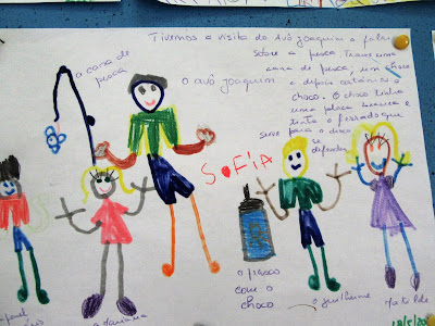 Foi uma manhã muito rica em aprendizagem e divertida pois até o Rafael já foi à pesca pescou um tubarão... soubemos que os pais do Tiago e Sofia não vão à pesca mas compram o peixe na praça...