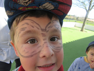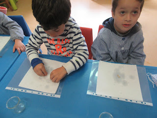 muitos "tesouros" têm ido para a nossa sala, para o espaço da natureza, pedras, paus, bichinhos fazem parte desse tesouro que os meninos vão apanhando durante os recreios...aqui está o D. a apreciar a girafinha que construímos com os pauzinhos que ele apanhou. o R. é também um menino muito interessado e curioso. Aqui está ele a fazer as suas descobertas e observações com a lupa.