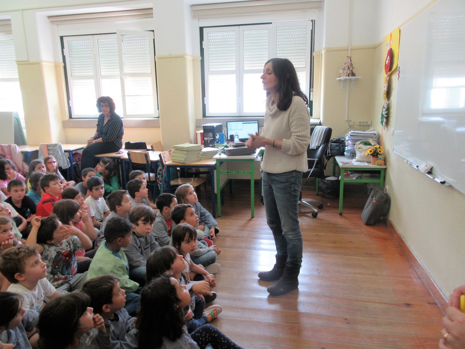O tempo passa depressa quando estamos com pessoas interessantes como a Teresa...começámos com perguntas que os meninos quiseram fazer e nenhuma ficou sem resposta...